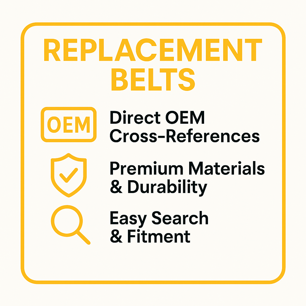 We strive for accuracy, but it is the customer’s responsibility to verify belt compatibility, specifications, and fitment before purchase. Use of an original equipment manufacturer (OEM) name is for reference only and does not imply endorsement or that the product is a direct OEM replacement unless clearly stated.